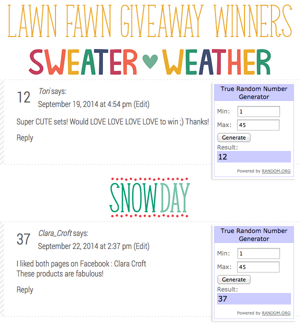 Lawn Fawn Giveaway Winners