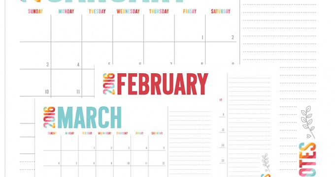 NEW 2016 Colorful Calendars + FREE Printables